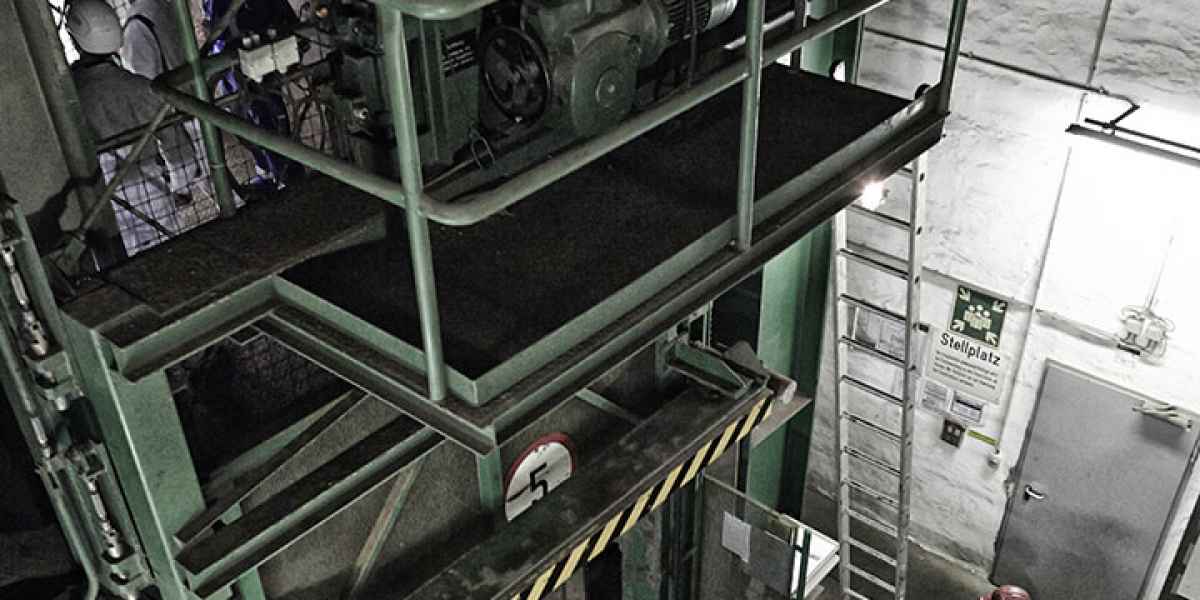- Förderkörbe sind überwiegend für den Transport von Versorgungsmaterial in die Grube und für Personentransporte konzipiert.