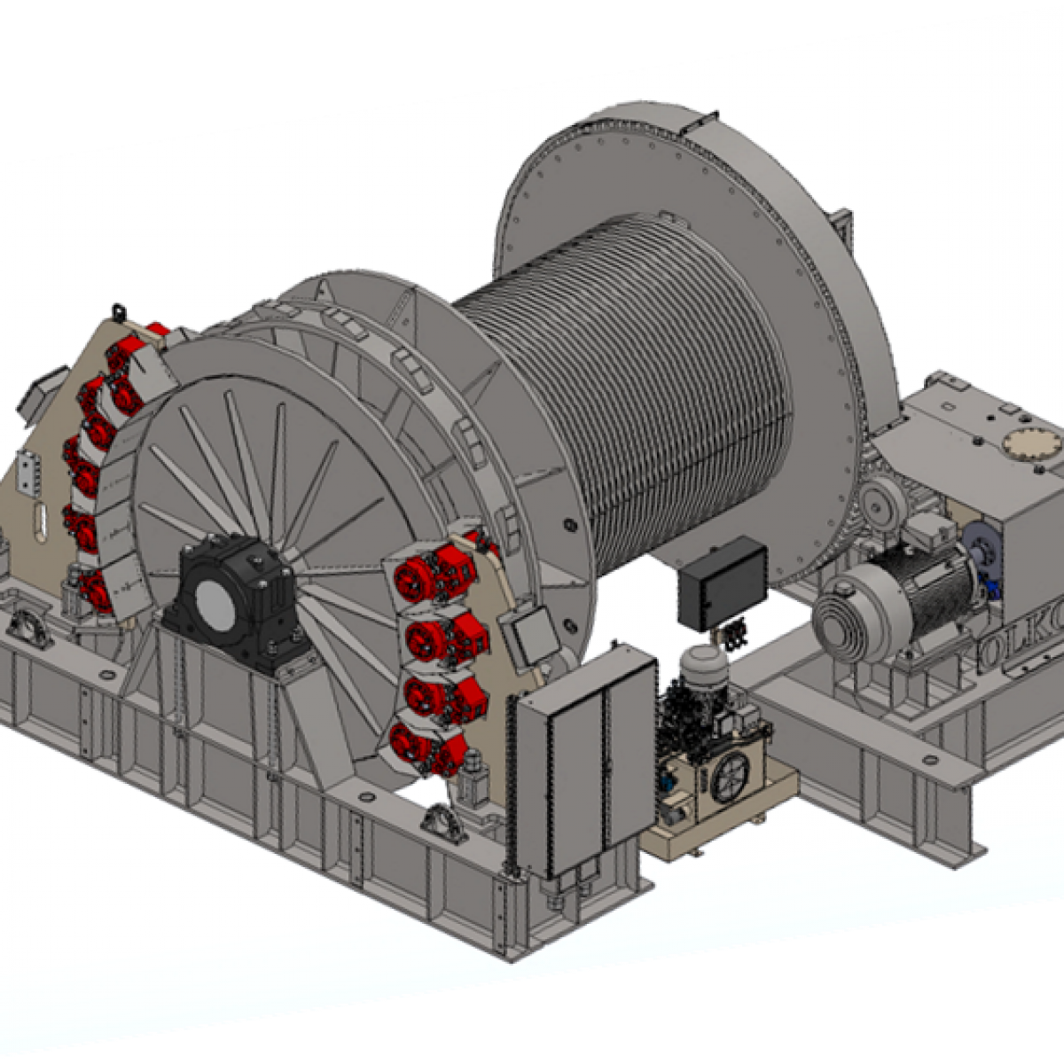 - Bühnen- Schwerlast und Greiferwinden werden ausschließlich als Getriebemaschinen gebaut. Der Antrieb erfolgt elektrisch oder pneumatisch. Ein Großteil der von OLKO gelieferten Maschinen wurde untertage in schlagwettergefährdeten Bereichen eingesetzt. OLKO hat ein Maschinenkonzept entwickelt, bei dem der Antrieb, die Steuerung und Regelung sowie die Überwachungseinrichtungen (Drehzahl/Fahrweg) komplett pneumatisch betrieben wird (PPS 1).